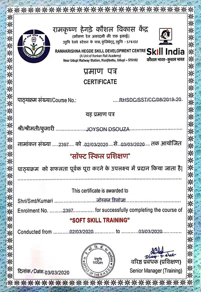 • Soft Skill Training_ in association with Ramakrish Hegde Skill Development Centre